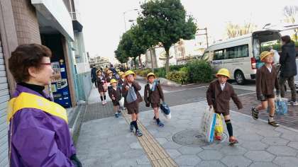 堀江連合の女性会の方が、登校時の見守り活動を行ってくださいました。
