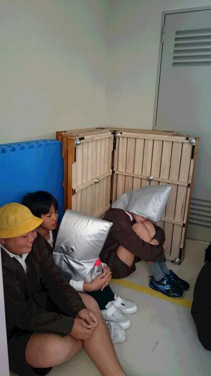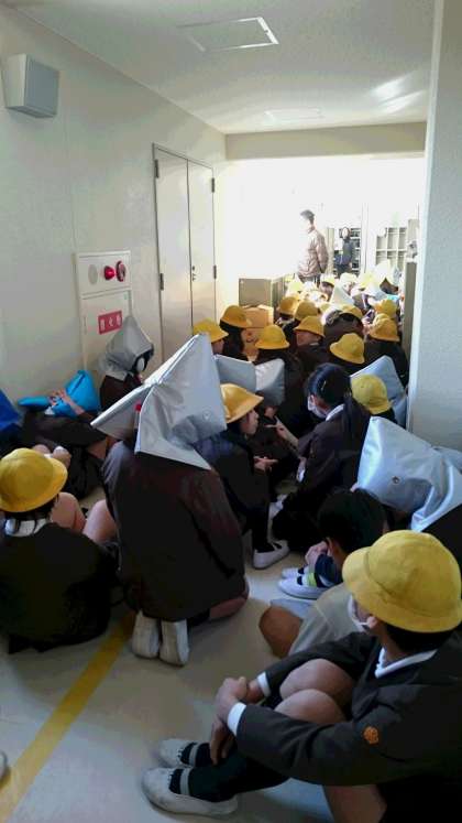 6年生の3クラスは、西校舎の4階に二次避難しました。