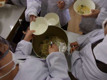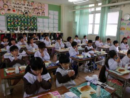 1年生も大きくなって食欲旺盛です。おかわりがしたくて、たくさんの人がじゃんけんに参加します。楽しい給食時間を過ごしています。