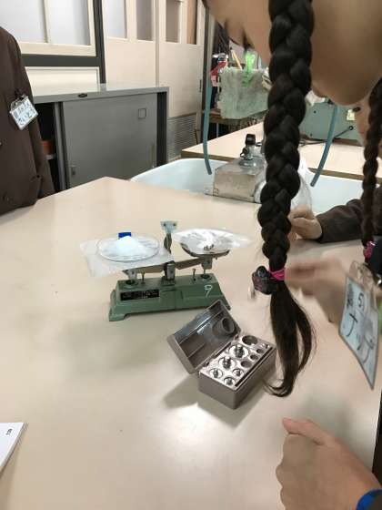 左右にふれる針に注目しながら班で協力してはかることができました。