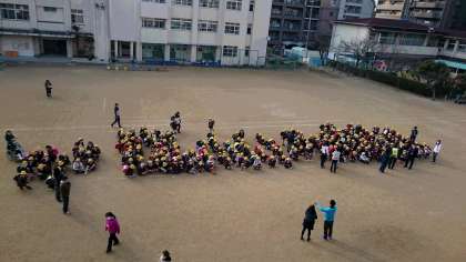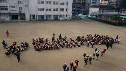 学校の近くでぼやがあったので、様子を説明した後、下校の用意をしておさまるまで運動場で待機しました。