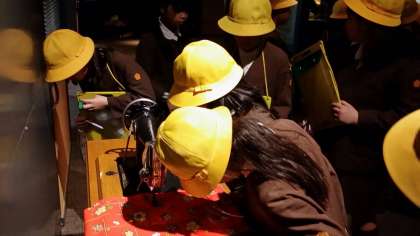 今日、3年生は社会見学でくらしの今昔館に行ってきました。