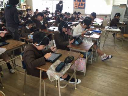 大阪市の実地調査があり、ICTを使った授業や、運動場の狭隘化の様子等を、視察されました。