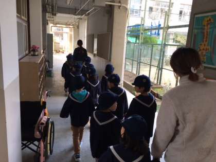 メリーガーデン保育園の年長児が小学校の見学に来ました。