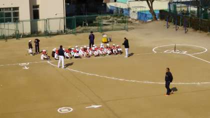 ティーボールを教えてくださり、チーム対抗で楽しみました。
