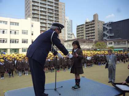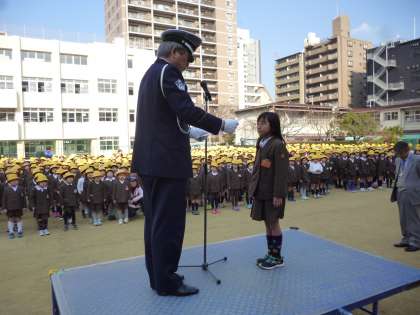 冬休みに書いた交通安全コンテストの作文の表彰を行いました。
