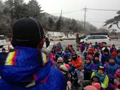 バスの中でワイワイがやがやしてる間もなく、予定よりも30分も早く六甲山人工スキー場に到着しました。