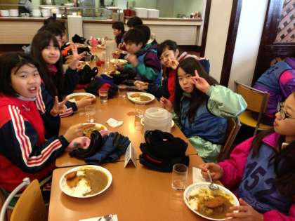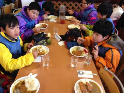 昼食タイムです。定番のカレーライスですが、とにかくおいしい!