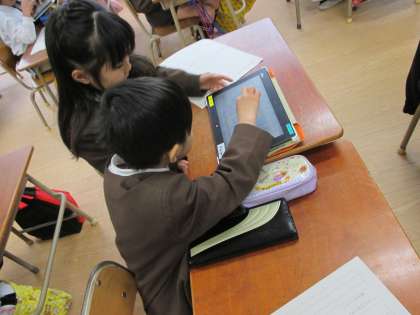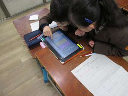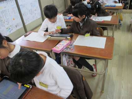 1組と3組は国語の学習でタブレットを使ってことばのなかま分けをしました。