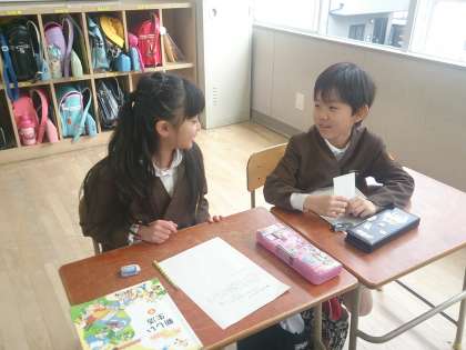 生活科の学習で、友だちのよいところをカードに書き、手渡しました。