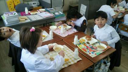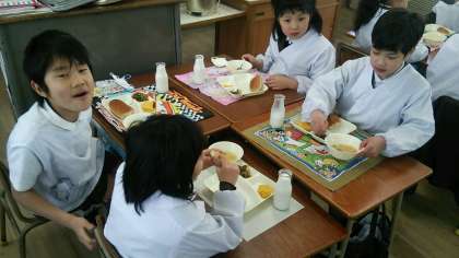今日の献立は、牛肉のデミグラスソース煮、コーンスープ、かぼちゃのプリン、パン、牛乳です。