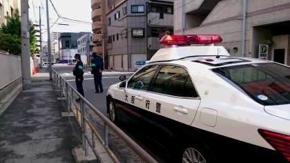 西警察から登校時の見守りに来てくださいました。