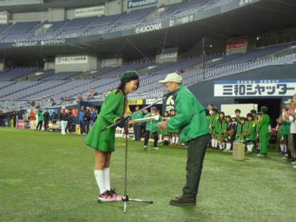ソフトボール大会に先立ち、大阪市子ども会育成連合協議会から、子ども会鼓笛隊の創設50周年を記して、表彰状が贈られました。歴史のある活動に心から敬意を表します。
