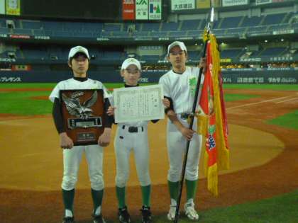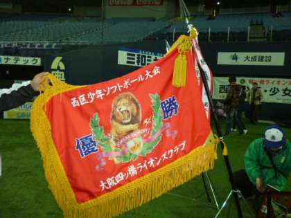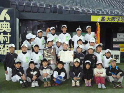 試合が終わった瞬間、大阪ドームにはち切れんばかりの大声援がこだまし、6年生最後の試合に花を添えることができました。