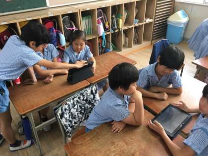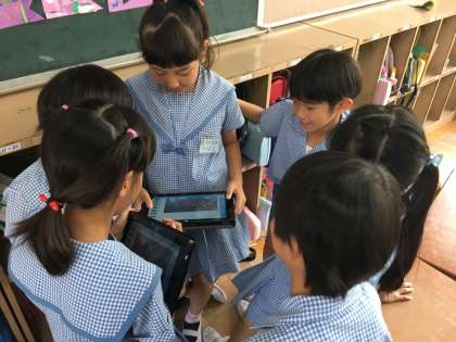 今日は、5年生が2年生にタブレットを教えに行きました。