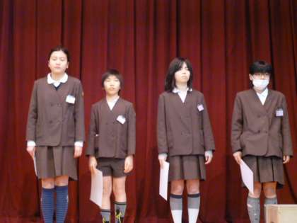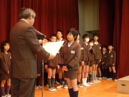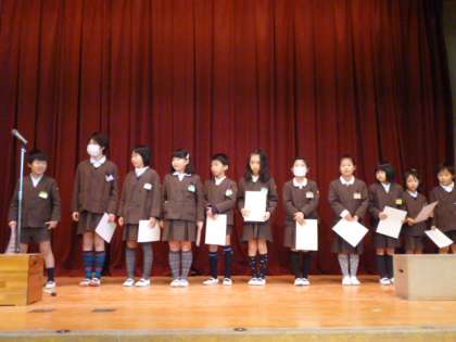 四ツ橋ライオンズクラブ国際平和ポスターコンテスト、毎日新聞社主催の読書感想図コンクールの入選、ソフトボール新人戦・天満杯で3位等の授賞式を行いました。
