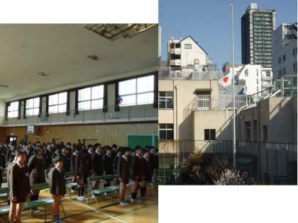 3年前に東日本大震災が発生した午後2時46分に合わせて、追悼の黙とうをささげました。