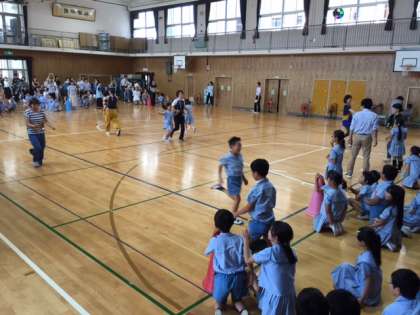 一回戦は、保護者の方と行い、二回戦は先生を先頭に子どもたちだけで行いました。