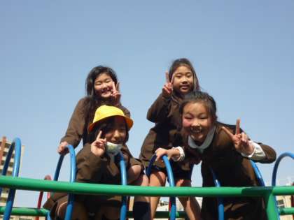 春の暖かな陽気となった校庭では、子どもたちが、上着を脱いでうっすら汗を流して遊んでいます。