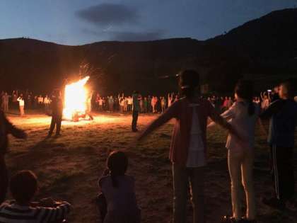 キャンプファイヤーの後は、宿舎にもどって室長会議、就寝準備、班別反省会です。