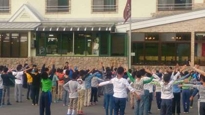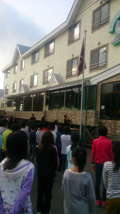 少し眠そうな児童もいますが、元気いっぱいがんばります。