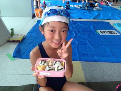 お弁当のおにぎりに「がんばれ」と書いてあります!