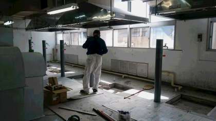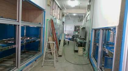 今までの給食室にも、新しい釜が設置されるなど1,000食以上の給食を作れるように改修工事が進んでいます。