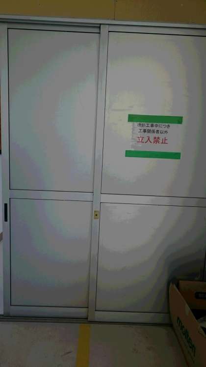 西校舎の廊下と新校舎の廊下が繋がるので、工事の間の危険を回避するために、手前に扉が設置されました。