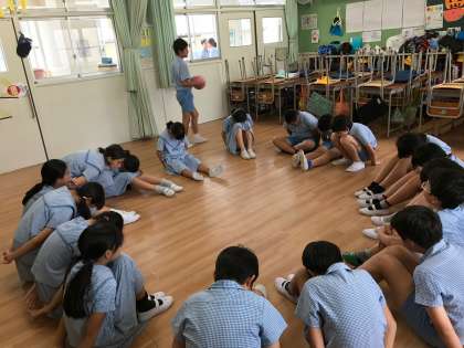 今日は、ハンカチ落としのアレンジ版ボール落としでした。