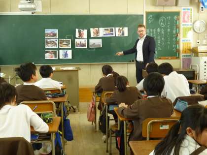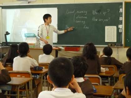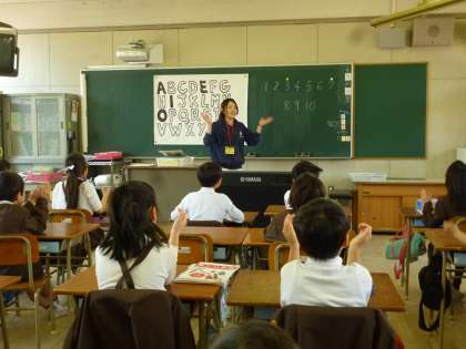 本校では英語に親しむため本年度から、グローバルタイムとして毎朝10分、1年生から6年生までの全学年で、英語に触れあう時間を設けました。