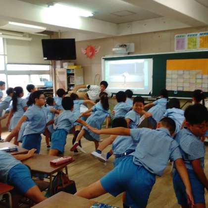 毎週水曜の朝は、各教室で背筋ピーン体操を行っています。