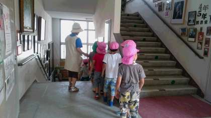 1年生と一緒に作品を作った、アスク南堀江保育園の園児たちが、作品の鑑賞をしました。