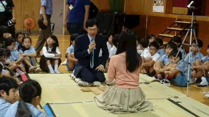 谷川九段棋士と室田女流二段棋士が訪問して、将棋の授業を行ってくださいました。