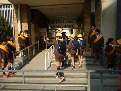 今日は土曜授業です。生活安全委員のメンバーが、自主的に朝のあいさつに立ってくれています。天気も良くさわやかな気分にさせてくれます。