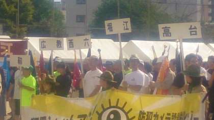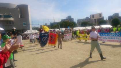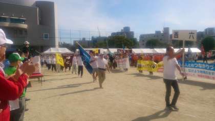 青空の中「体育と防災のつどい」が松島少年広場で行われ、西六連合・堀江連合も参加されました。