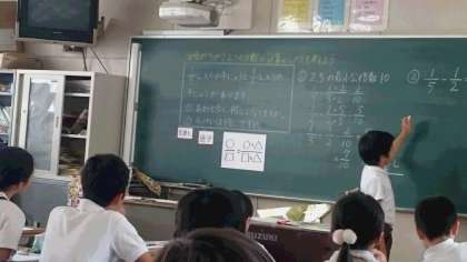 教育実習生が5年の算数の授業を行いました。
