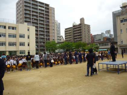 朝礼では、校長先生から「新学期が始まって1か月が経ちました。1ヶ月振り返ってどれだけいいことができたのか振り返ってみよう」と話がありました。