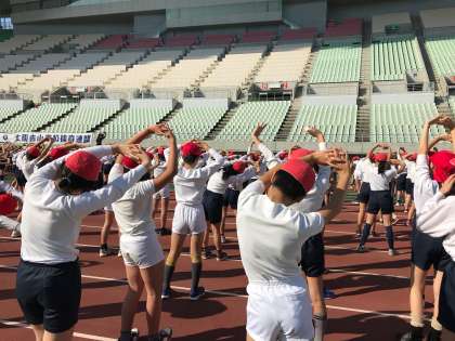 気持ちの良い青空の下、ヤンマースタジアム長居・ヤンマーフィールド長居でおもいっきり体を動かすことができました。