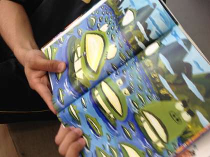 子ども達は、楽しそうに本の読み聞かせをきいていました。