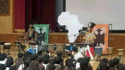 前回に引き続き、2年生がアフリカンパーカッションの授業を受けました。