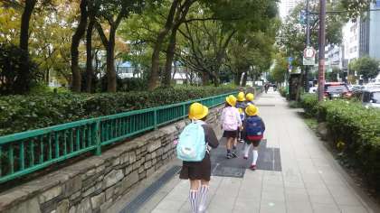 児童の安全見守り隊として、街角に保護者の方が立ってくださいました。