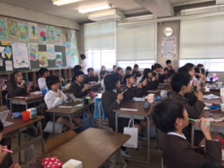 4年生がフッ化物塗布を行いました。