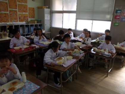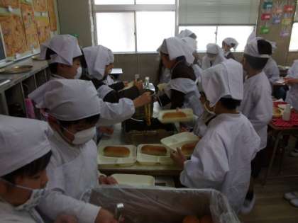 1年生も4月の頃とは違います。自分たちで手早くどんどん配膳をすすめていました。おかわりもしっかりして、ぜんぶ食べることができました。もうすぐ2年生という貫禄が漂っています。