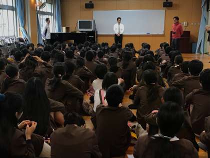まず中学校の先生からお話をして頂きました。