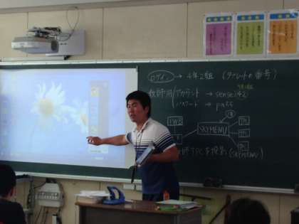 子どもたちの学習で使用している電子黒板やタブレットの活用について、みんなで研修をしました。