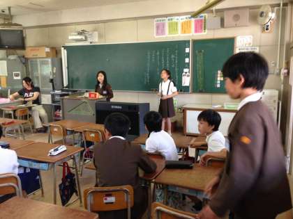 写真は、環境委員の子たちが、もっと学校をきれいにするには?という話し合いをしているところです。