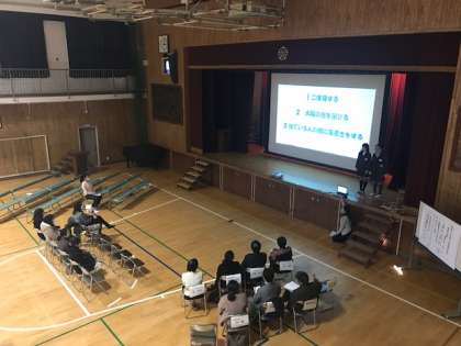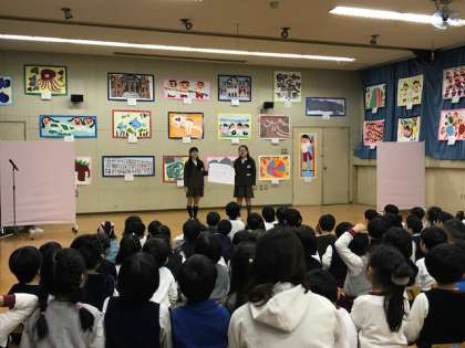 児童健康委員会が『早ね・早起き・元気な体』をテーマに劇やクイズを行いました。