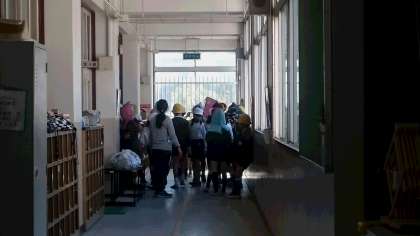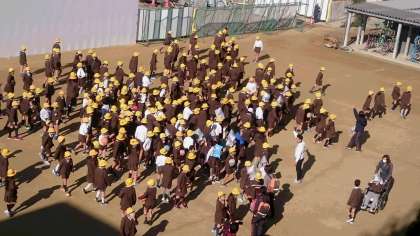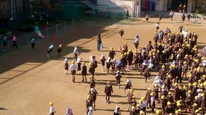 休み時間に地震が起きた想定で、避難訓練を行いました。