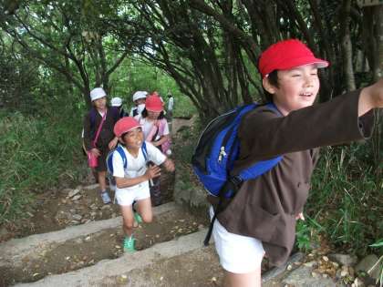 急な山道を一生懸命のぼりました。