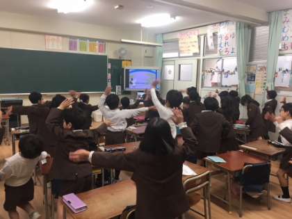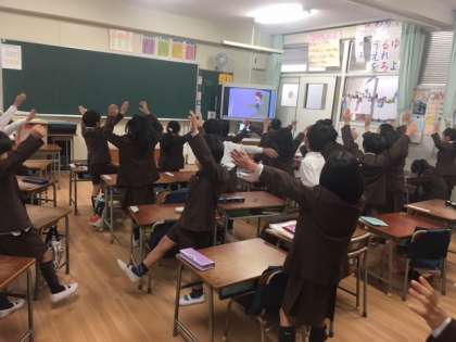 朝のグローバルタイムでは、楽しく歌ったり踊ったりして英語に親しんでいます。